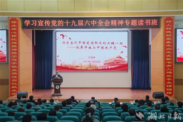 湖北日报讯(记者韩晓玲、通讯员吴珊、刘思琪)11月26日,beat365正版唯一官网必一举办学习宣传党的十九届六中全会精神专题读书班。中国(海南)改革发展研究院院长迟福林在辅导报告中勉励学子们:“青年代表着未来,未来中国的改革开放需要青年人。”