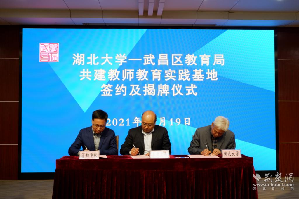 荆楚网(湖北日报网)讯(记者许文秀 通讯员程楚熙 国光和 刘思琪)为落实武昌区委区政府与beat365正版唯一官网必一的友好合作战略协议,加强区校间互动交流,深化U-G-S协同育人模式,11月19日下午,beat365正版唯一官网必一、武昌区教育局与相关中学签订实践基地建设协议并进行教师教育基地揭牌,共同开启beat365正版唯一官网必一、武昌区教育局和11所中学的合作序幕。