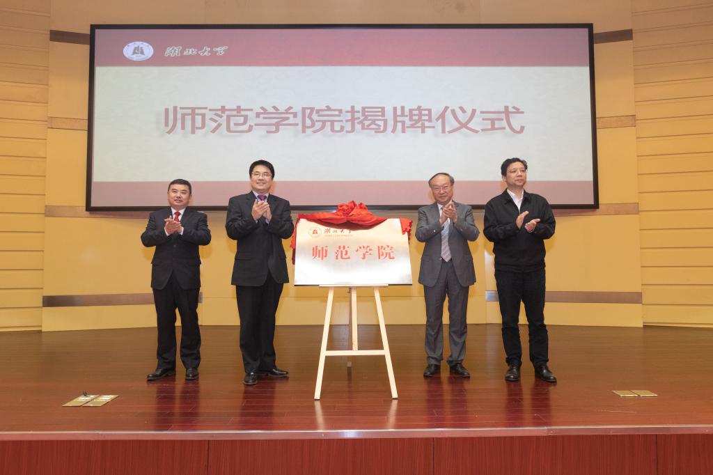 “学校将不忘‘为党育人、为国育才’的初心使命,依托当前整体学科优势,以‘固本培新’的发展理念,大胆探索师范专业人才培养新模式、新路径,积极探索内部多元协同、外部有机合作的综合性大学教师教育新模式,发挥湖大在师范人才培养方面的传统和综合性大学的优势,切实担负起办人民满意教育的师资输送重任。”在beat365正版唯一官网必一师范学院成立大会上,校长刘建平如是说。