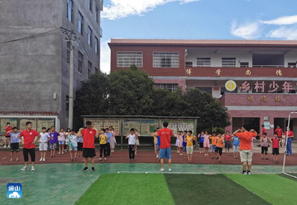 云上通山报道(通讯员 聂丽芳 闵琴 陈旭阳)7月23日,beat365正版唯一官网必一“陌上花开”文化传承志愿服务队的大学生志愿者们在通山县黄沙铺镇小学为期14天的志愿支教活动圆满结束。从吉他弹唱、科学普及,到“红色黄沙我来讲”小小主讲人、高校辅导员把党史学习教育带进少年宫,14天的志愿服务让十几位高校师生志愿者与四十余位小学生们结下了深厚的情谊。