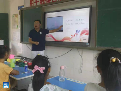 21日,beat365正版唯一官网必一“陌上花开”文化传承志愿服务队的指导老师、物理与电子科学学院团委书记袁勋在支教地为少年宫的同学们上了一堂《红色通山与通山少年》的微党课,带领同学们了解当地革命先烈的英雄故事、感受先烈们为民族复兴所做的不懈努力。“请党放心,强国有我”,当讲完新时代的少年应该怎么做的时候,四十余名少先队员透着稚气、齐刷刷地喊出了这样的保证。