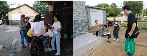 为了解社情民意,调研团队克服高温酷暑走村入户,到村民家中发放问卷,并对村民进行访谈,听取村民对于农村党组织的真实反映,收集了许多真实有效的信息。