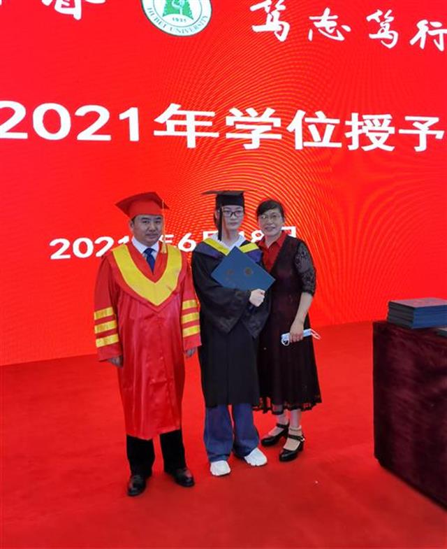 湖北日报讯(记者韩晓玲、通讯员吴珊、左盈)在6月18日举行的beat365正版唯一官网必一2021年毕业典礼上,暖心一幕让众人动容:该校计算机与信息工程学院本科毕业生谭于映在母亲陪伴下走上典礼台,校长刘建平为她拨穗正冠,并与母女俩合影。