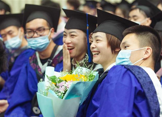当天,未能来到现场的毕业生通过“云端”参加毕业典礼。在西藏山南支教的毕业生周天琪说:“青春因磨砺而出彩,人生因奋斗而升华。再见湖大,我将以你为荣,在新的旅途中实现人生价值。”