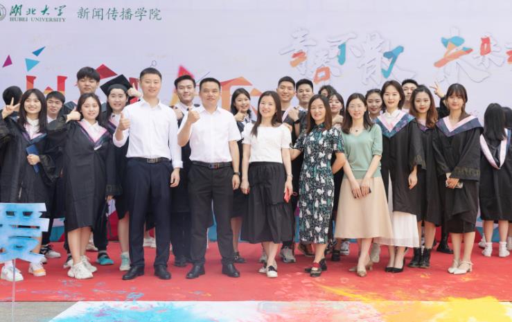 “毕业快乐!”“冲,新传人!”……活动中,学院不同专业的老师们也惊艳亮相,他们手持应援牌为毕业生们“打call”,同时与学生一起踏上“彩虹启航路”,并在签名墙上留下自己的姓名与祝福。“很荣幸能陪你们走过这一段,见证你们的成长与青春年少,老师只愿再相遇时,你们仍是少年!”当天,传播学专业吴宁老师还在QQ空间上深情发文,寄语毕业生们未来继续乘风破浪、无畏前行。 “抚平冉冉逝去的光阴,又见过去岁月如歌的年”“沙湖水水粼粼,琴园桂花香桂花香”“当你走近才发现,远过故乡的距离”……今年恰逢中国共产党建党100周年和beat365正版唯一官网必一建校90周年,在这一历史交汇点下,学院也精心为毕业生们送上《追寻》《beat365正版唯一官网必一校歌》《异乡人》三首歌,勉励毕业生们不忘来时路,带着母校的期许,踏上“新征程”,追寻“新梦想”。