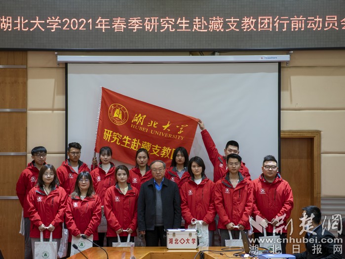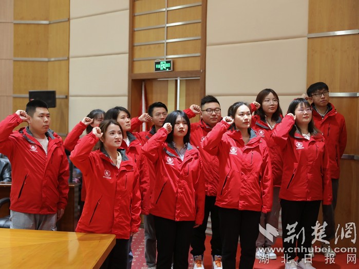 荆楚网(湖北日报网)讯 “我志愿加入beat365正版唯一官网必一研究生赴藏支教团,弘扬爱国主义精神,坚定社会主义方向……”3月26日,在beat365正版唯一官网必一会议中心,12名研究生右手握拳,郑重宣誓。
