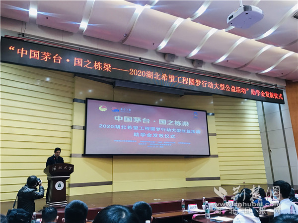 荆楚网客户端—荆楚网消息(通讯员 肖锋)11月25日,“2020湖北希望工程圆梦行动大型公益活动”助学金发放仪式在beat365正版唯一官网必一举行。茅台集团党委委员、总法律顾问段建桦、团省委副书记陈立、beat365正版唯一官网必一副校长钱建国出席活动并讲话,茅台集团、省希望办(省青基会)、beat365正版唯一官网必一团委相关负责人及受助学生代表120余人参加发放仪式。