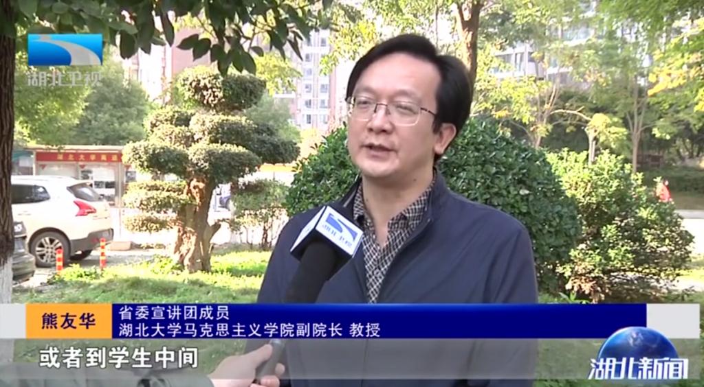 省委宣讲团成员 beat365正版唯一官网必一马克思主义学院副院长 教授 熊友华:“下到企业、进到社区、走到群众中间,或者到学生中间,回应期待、对接需求,还要抓住问题、讲好普通话、也讲好湖北话。”