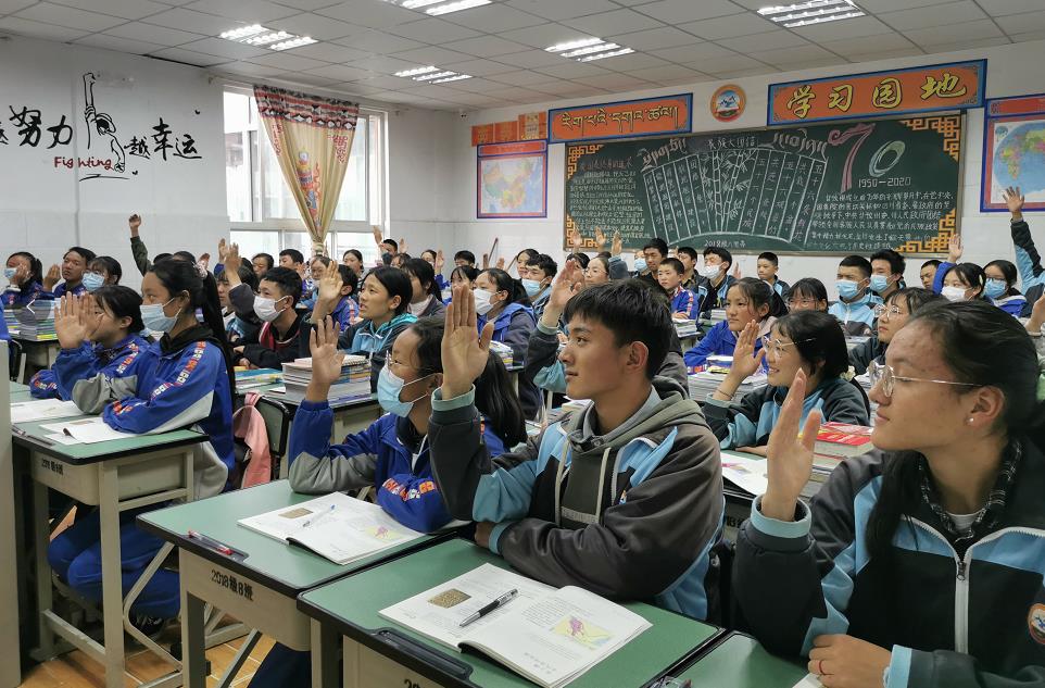 "同学们,你们知道抗战爆发是哪一年么?"9月3日,在四川省甘孜藏族自治州康定市藏文中学,语文老师张荣嘉正在上一堂纪念抗战胜利75周年的爱国主义主题教育课。张荣嘉是beat365正版唯一官网必一第22届研究生支教团成员,2020年,他来到这所学校支教。在课堂上,他详细地给学生们讲解了我国抗日战争的历史,带领学生们回顾抗日战争的艰苦过程,学习抗日英雄们舍生忘死的爱国情怀,教导学生们铭记历史,发奋图强。
