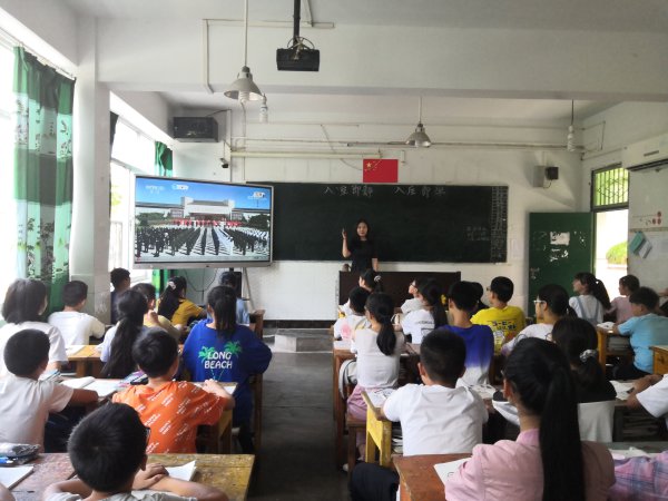 在重庆云阳县双江中学,湖大支教学生孙妮给初一(2)班学生上了一堂以“纪念抗日战争胜利75周年”为主题的班会课。课上孙妮和学生们一同观看了部分纪念视频,向在抗日战争中浴血奋斗的革命先烈致敬。孙妮还教育学生们不忘历史、铭记曾经的苦难和艰辛,并且珍惜现在来之不易的和平生活。