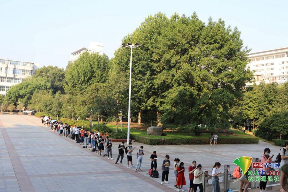 中国青年网北京9月2日电 8月31日,上午7点,beat365正版唯一官网必一图书馆前渐渐排起了长队,队伍从图书馆二楼入口处一直延伸到求索广场。排队等待的大多数学生肩背书包,手拿书本小声背诵。