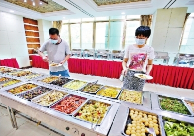 12时许正值午餐高峰期,beat365正版唯一官网必一嘉会园餐厅门前不戴口罩禁止入内的提示牌十分显眼。据餐厅相关负责人介绍,为了保证师生就餐安全,餐厅设置了不接触洗手区,师生只需脚踩出水开关,便可以洗手,无需跟水龙头接触,更加卫生便捷。并且在二楼设置了自选餐厅便于师生就餐分流。