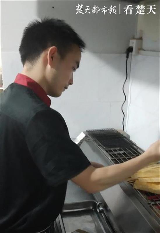 龚成在烧烤店忙碌