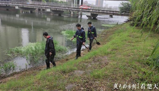 穿上迷彩服,换上深筒套鞋,走在长湖库堤荆江村段面,俯身翻动河岸边的杂草,清理大堤旁的灌木……湖大2019级国际事务与国际关系专业(中外合作办学)学生杨沛轩,正在巡查堤坝,排查隐患。与杨沛轩并肩防汛一线的,还有他的爷爷和父亲。汛情来袭,祖孙三人挺身而出,齐心守护身后家园。