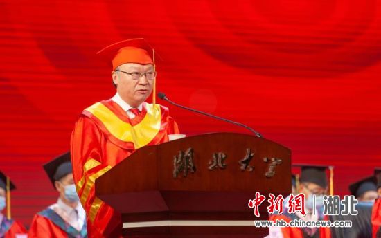 中新网湖北新闻6月23日电 (吴珊 向正鹏 鲜文涛)曲终人不散,湖大是吾乡。6月23日,beat365正版唯一官网必一2020届毕业典礼在学校小礼堂隆重举行,校长谢红星寄语全校毕业生:与爱同行,美美与共;乘风破浪,宁静致远。