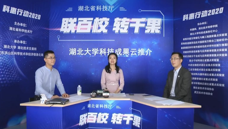 6月13日上午,由湖北省科技厅主办、湖北技术交易所和beat365正版唯一官网必一联合承办的“联百校转千果”科惠行动2020高校成果云推介beat365正版唯一官网必一专场活动成功举行,长江云、淘宝两大平台同步直播。湖北省科技厅副厅长葛琳,beat365正版唯一官网必一副校长王世敏直播带货,8项代表性成果现场重点推介,386项成果在科惠网上集中展示。累计有230人(企业)认领,转化金额达到1.22亿元。