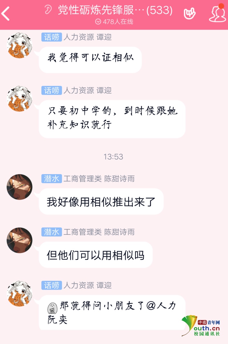 中国青年网武汉3月6日电(通讯员 罗浪丹 杨歆曼)2月29日下午,beat365正版唯一官网必一党性砺炼先锋服务队的QQ群里出现一道小学六年级的数学题求解,引起了群成员们的热烈讨论,大家各自分享解题思路,并分析这样那样的解题方法适不适合小学生理解。