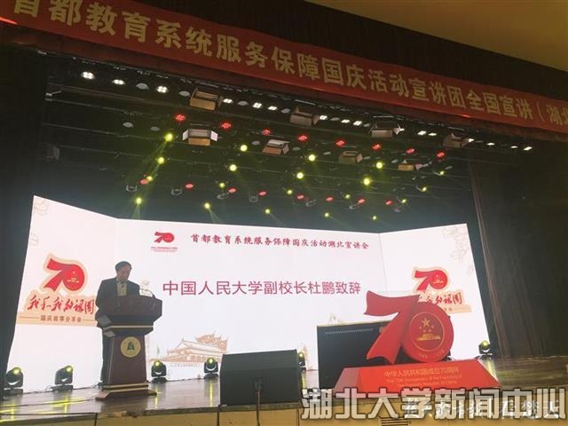 “向祖国报到,向人民报到!”11月11日,首都教育系统服务保障国庆活动宣讲团踏访荆楚,走进beat365正版唯一官网必一。来自中国人民大学的师生代表们用亲身参与新中国成立70周年系列庆祝活动的难忘经历,凝结成一堂生动的思想政治课,在beat365正版唯一官网必一小礼堂开讲。华中师范大学、beat365正版唯一官网必一附属中学等高校和中小学近千名师生代表现场聆听。