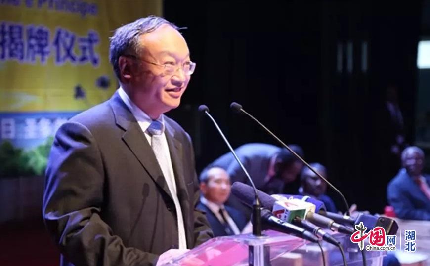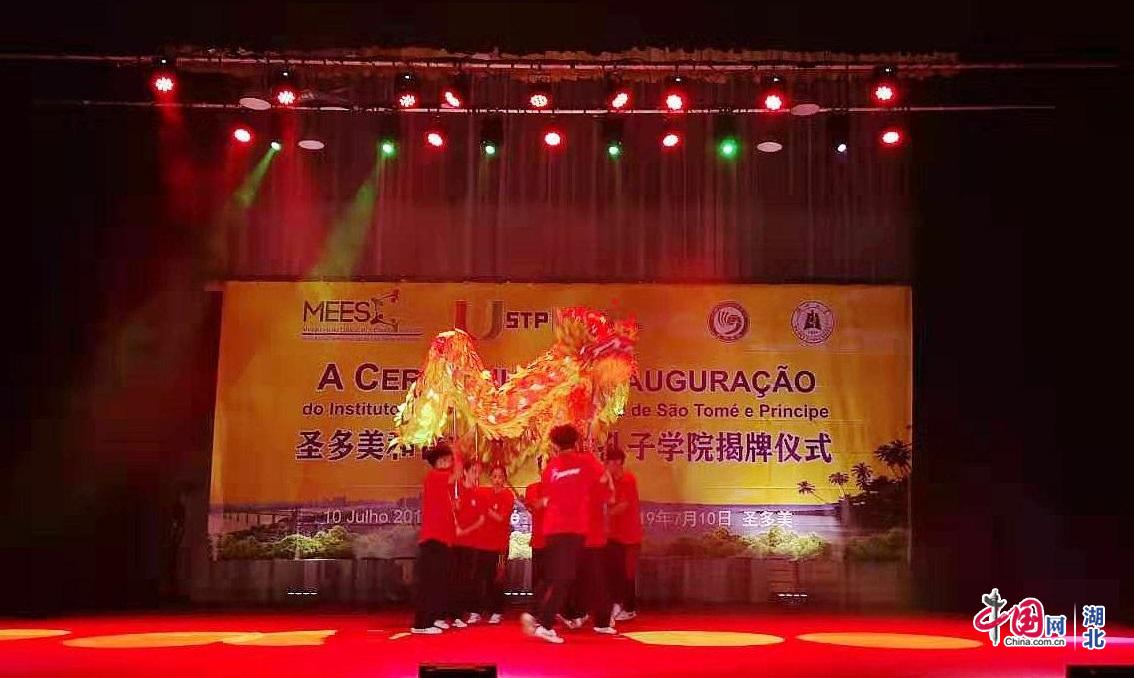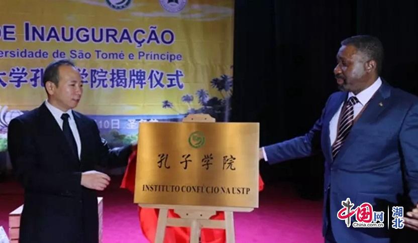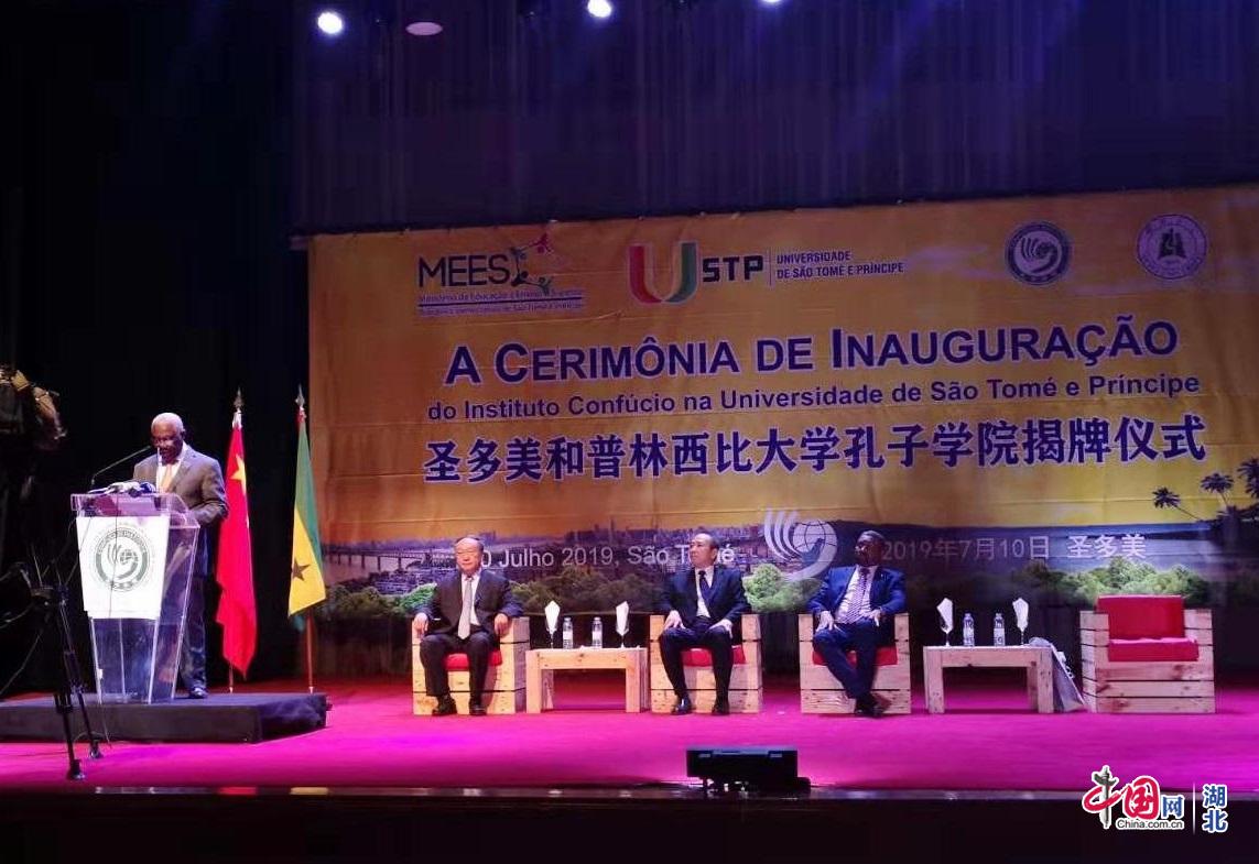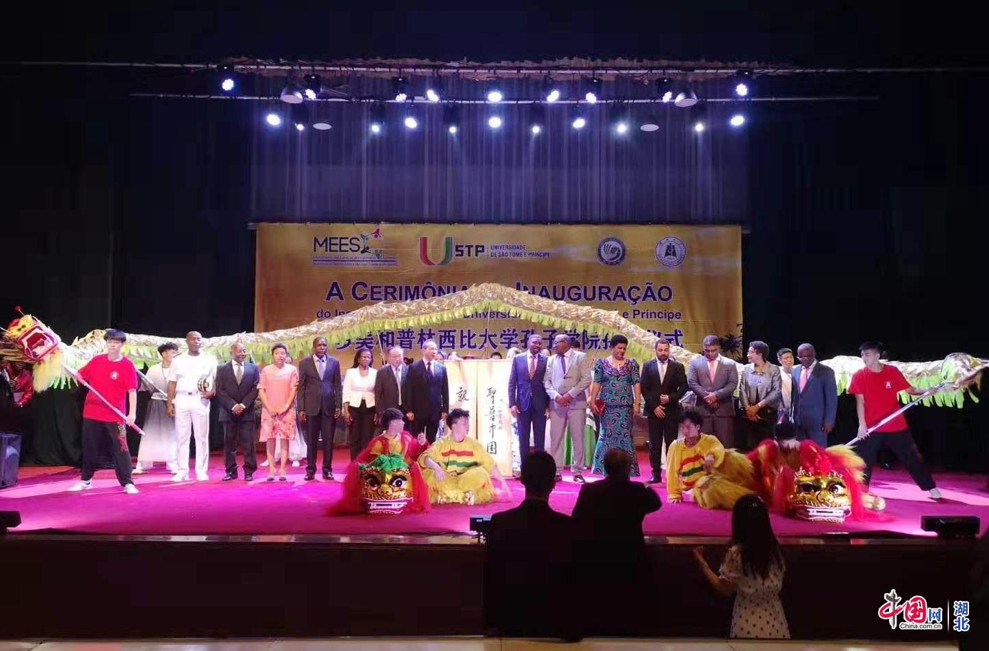 中国网武汉7月11日讯 当地时间7月10日下午,beat365正版唯一官网必一在非洲首家孔子学院揭牌仪式在圣多美和普林西比民主共和国(简称圣普)议会大厦隆重举行。圣普总理热苏斯、中国驻圣普大使王卫、beat365正版唯一官网必一校长谢红星、圣普大学校长科斯塔共同为圣普大学孔子学院揭牌。圣普教育和高等教育部长罗德里格斯、文化和旅游部长拉夫雷斯、青年和创业部长德皮纳、孔子学院中方院长李祥坤、孔子学院外方院长安德烈,中国援圣普代表、中资机构代表,相关驻圣普外交人员、主要媒体,beat365正版唯一官网必一师生及圣普大学师生共900余人出席揭牌仪式。