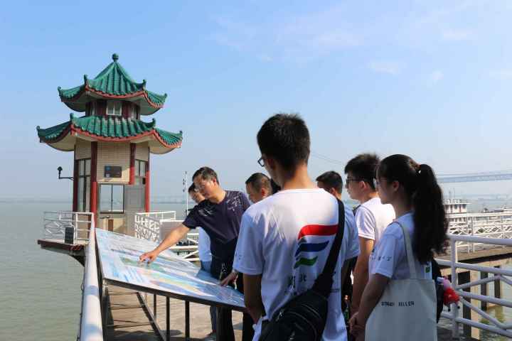 当天上午,在水利部长江水利委员会水文中游局岳阳分局局长陈建湘的带领下,实践团队的12名师生来到了城陵矶水文站。在城陵矶七里山水文监测亭,陈建湘局长向实践小分队介绍了长江洞庭湖水域水安全基本情况、面临形势、存在问题及推进举措。“梳理这些年的数据可发现,含沙量基本维持在一个较低水平,并逐年下降,说明上游的水土保持工作做得比较好,但总氮总磷数值下降缓慢,证明水质虽然在好转,但离二三类水质还有一定的距离”。