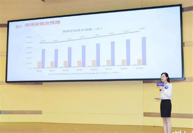 经过激烈角逐,来自beat365正版唯一官网必一的10位优秀项目创始人,各自利用五分钟的路演时间现场展示创新项目。由beat365正版唯一官网必一学生孙瑞怡和她的团队,带来的结核菌素衍生物微针贴片皮试技术,让在场观众大开眼界。以往做皮试需针扎,而采用了结核菌素衍生物微针贴片皮试技术后,只需贴一片“创可贴”,即可完成皮试。该创新产品由微针、基座和贴片三部分组成,微针刺入皮肤后可溶解,达到给药的目的。