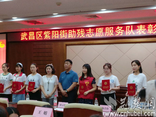 5月19日上午,全国第28个助残日(5月20日)到来之际,武昌区紫阳街阳光家园在华中师范大学逸夫国际会议中心报告厅集中表彰了来自武汉各高校的14个优秀志愿者团队和112位优秀志愿者。