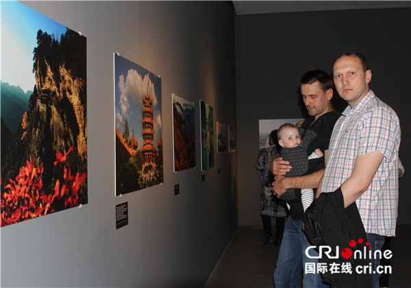 前来参观的来宾中,有不少曾经或正在雅盖隆学院孔子课堂学习的。成人班学员马勤带着妻子,抱着7个月大的女儿,一幅一幅认真地观看图片,他说,“学汉语要从宝宝抓起,我女儿一定比我学得快!”