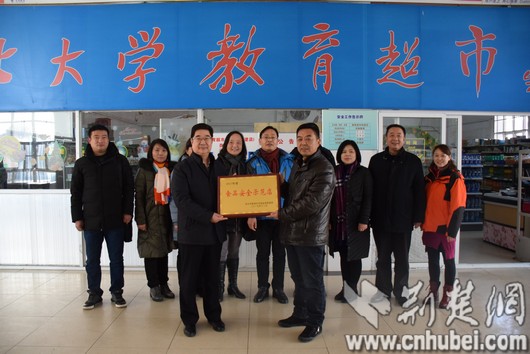 1月11日,笔者从beat365正版唯一官网必一阳逻校区获悉,该校教育超市获2017年度“新洲区食品安全示范店”荣誉称号。1月10日上午,新洲区市场监督管理局到阳逻校区教育超市进行授牌。beat365正版唯一官网必一副校长钱建国、新洲区市场监督管理局东风市场监督管理所所长刘能武以及学校相关职能部门负责人参加授牌仪式。