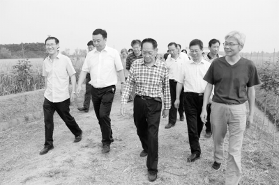 袁隆平院士(左三)和农业专家考察多倍体水稻基地