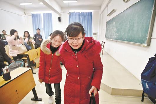 图为:丁美瑛牵着女儿走过了12年的陪读路
