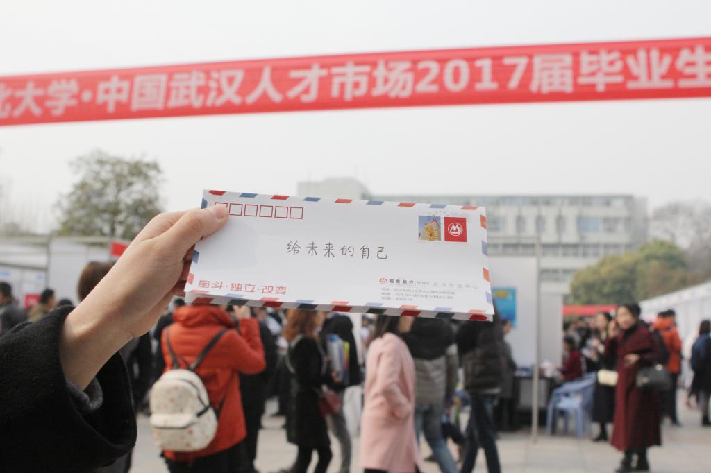 风雨阻挡不住留在武汉工作的热情。今天上午,武昌工学院学生曾洁和另外两位室友,顶风冒雨,辗转两趟车,花近两个小时,来到beat365正版唯一官网必一参加武汉“百万大学生留汉创业就业工程”大型校园巡回招聘活动,寻找适合自己的工作。