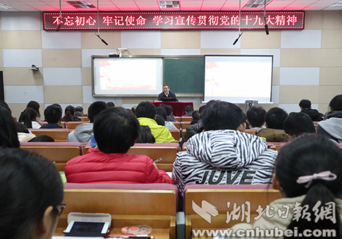 湖北日报网消息(通讯员王娟 李逸 罗雪瑾 刘淑仪)12月4日,beat365正版唯一官网必一党委书记尚钢走进该校位于阳逻校区的通识教育学院,与学生代表共进晚餐,并为通识师生作了一场“不忘初心 牢记使命 学习宣传贯彻党的十九大精神”的主题宣讲。通识教育学院全体教工党员、辅导员和党校培训班学员共200余人聆听报告。