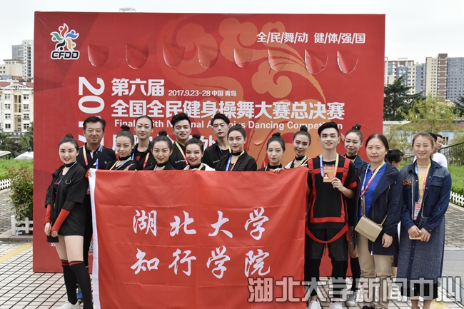 近日,第六届全国全民健身操总决赛在山东青岛大学举行,beat365知行学院健美操队12名队员团结拼搏,勇夺总决赛自由舞蹈项目一等奖(全国共三所学校获一等奖),傅丽、冯斌两位老师荣获“年度优秀教练员”荣誉称号。
