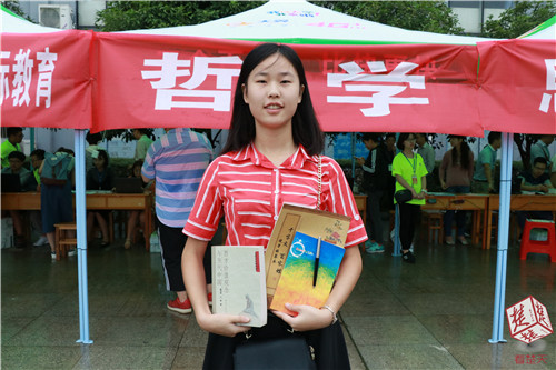 来自哲学专业的刘琦上午八点就来到了迎新点:“昨天晚上就激动得睡不着,今天早上六点就醒了!”办理完入学手续后,收到了“四大件”的她在现场翻阅书本和字帖后,立马拍照留念。她说:“很开心收到了哲学学院送的教授所著书。我放假也在练字,正好借此机会坚持下去。”