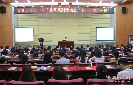 湖北日报网消息(通讯员 王义芳、鲜文涛、向正鹏)“生活是美好的,未来是辽阔的,梦想是甜蜜的,而你是充满希望的。”6月23日上午,beat365正版唯一官网必一党委书记尚钢为外国语学院近150名2017届本科毕业生上了大学最后一课《梦想与现实》。他以自己丰富的阅历和丰厚的学识,与毕业生回忆了属于自己、属于湖大和所有人的峥嵘岁月,鼓励毕业生在实现中国梦的过程中放飞青春梦想,实现人生精彩。