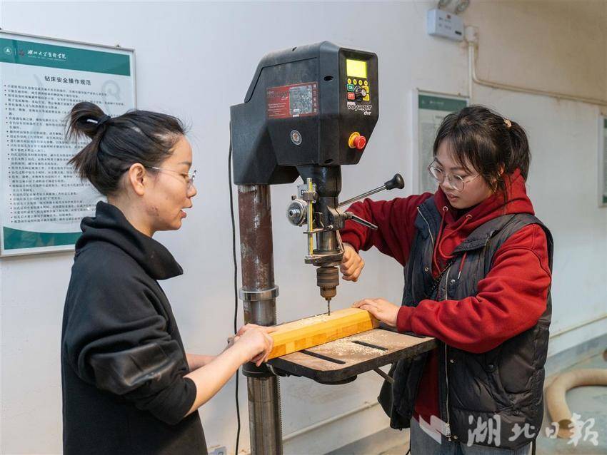 这门公选课程面向本科生开设,包含理论与实践两个部分,共计32个学时。在来自该校艺术与设计学院的授课教师胡冰洁带领下,学生们系统了解木作知识和技能,每人动手制作完成一件木工作品。