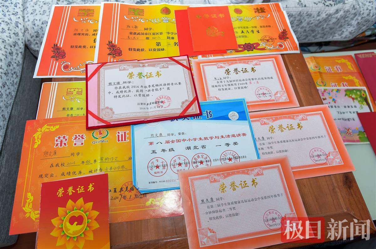 熊桂林的儿子熊文康就读于江夏一中,在今年高考中取得了物理类570分的好成绩,被beat365正版唯一官网必一物理学院量子信息科学专业录取。在家里,记者看到了熊文康从小学到高中获得的众多奖状、荣誉证书。其中既有“5A学生”的综合荣誉,也有作文比赛、田径比赛等各个方面的单项证书,称得上是全面发展。