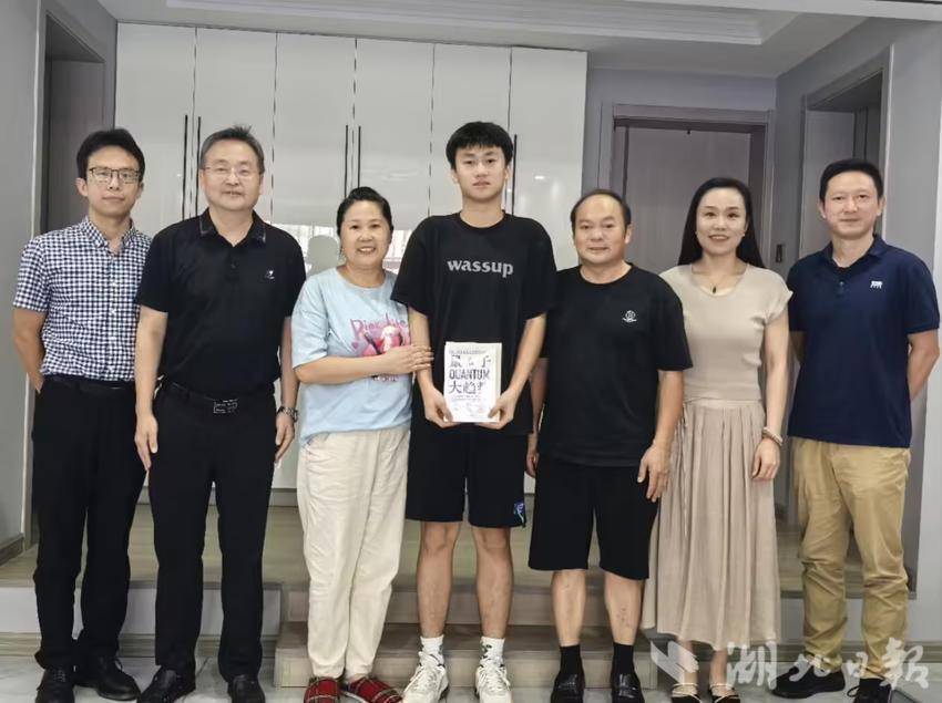 谈到家庭与校园的联系,湖大物理学院党委书记熊琳对熊文康说:“进入大学之后,你要学会和老师、同学、父母及时沟通自己的想法,学会调节自己的情绪,多多参加集体活动和实践,快乐学习,快乐成长。”交流之后,学院老师向熊文康赠送了思政类和专业类书籍。合影中,18岁熊文康站在老师和父母中间,稚气且坚毅。